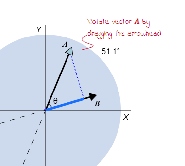 Interactive animation illustrating geometric interpretation of dot product.